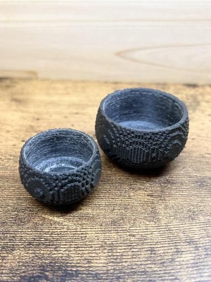 立方体を集めたドット絵3Dバージョンのような模様の、小さな鉢